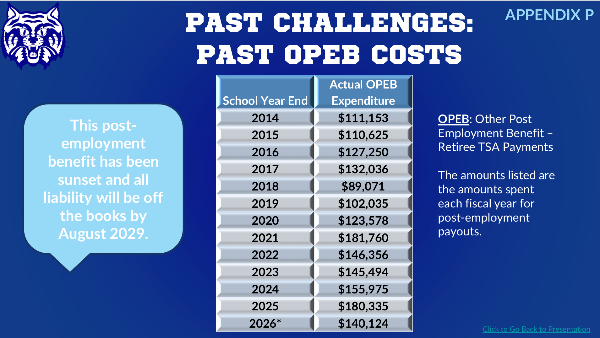 The district also identified long-standing post-employment benefit obligations as a major cost driver. Had these obligations been eliminated earlier, the fund balance would again be substantially stronger today. These benefits have since been sunset, but their financial impact accumulated over many years.